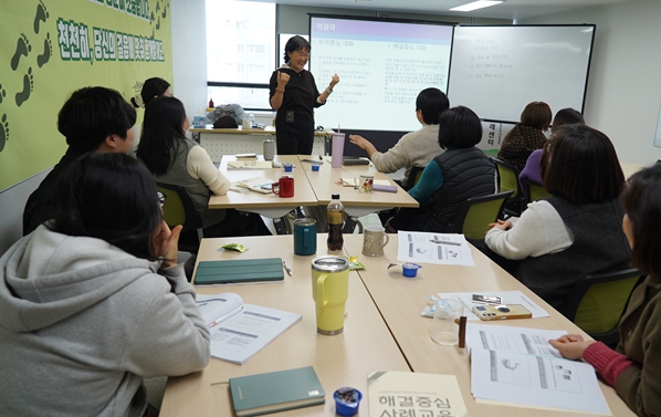 유성은 인행연구소장이 강의를 맡아 ‘강점 관점 해결중심 사례관리 기본교육’을 한다.