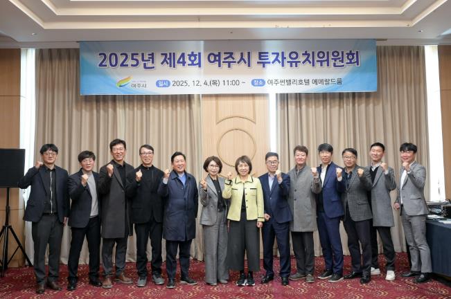 조정아 부시장은 “위원님들께서 주신 제언 하나하나가 여주시 투자유치 정책의 방향을 더욱 명확하게 제시해 주었다.”라며 “정기적인 투자유치위원회 운영을 통해 소통과 협력을 강화하고, 기업이 머물고 싶어하는 투자환경 조성을 위해 더욱 노력하겠다.”고 말했다.