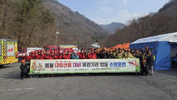 [뉴스앤톡] 보령시는 봄철 대형산불 조심 기간을 맞아 유관기관 간의 유기적인 공조 체계를 점검하고 실전 대응 능력을 강화하고자 지난 12일 성주면 심원동 주차장에서 대형산불 합동 소방훈련을 실시했다.