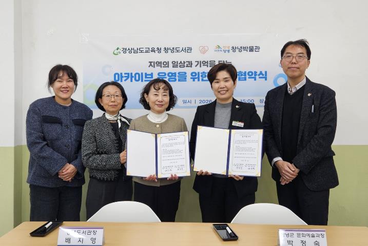[뉴스앤톡] 창녕박물관은 12일 지역 유관기관인 경상남도교육청 창녕도서관과 업무협약을 체결하고, 지역 향토 유산의 체계적인 수집·보존과 교육적 활용을 위한 협력 체계를 구축했다.