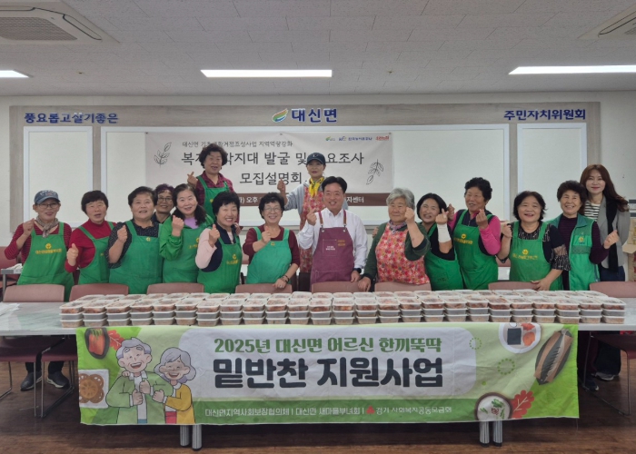 한편 대신면 지역사회보장협의체는 매주 화요일 대신면 새마을부녀회와 대신면 적십자회 두 단체와 함께 ‘어르신 한끼뚝딱 밑반찬 지원사업’을 진행하고 있으며, 정성껏 준비한 반찬과 함께 어르신들에게 따뜻한 마음을 전하며 지역사회에서 큰 호응을 얻고 있다.