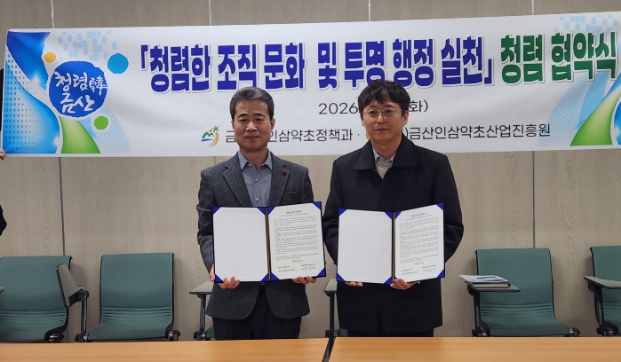 군 관계자는 “올해는 안전성 검사 기반의 유통 체계가 본격 시행되는 중요한 해인 만큼 진흥원과의 유기적인 협력이 무엇보다 중요하다”며 “오늘 협약한 청렴 정신을 바탕으로 금산인삼 산업의 투명성을 높일 수 있는 정책을 추진하겠다”고 말했다.