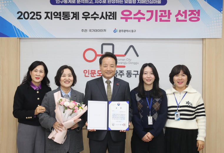 [뉴스앤톡] 광주 동구는 국가데이터처가 주관하는 ‘2025년 지역통계 우수사례 공모전’ 전국 본선 심사에서 ‘인구통계로 분석하고 지수로 완성하는 맞춤형 치매안심마을’ 사례로 우수기관에 선정됐다고 밝혔다.