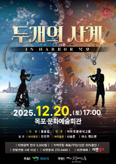 [뉴스앤톡] 목포시는 연말을 맞아 시민들에게 품격 있는 클래식 공연을 선보이기 위해 오는 12월 20일 오후 5시, 목포문화예술회관에서 2025 송년음악회 ‘두 개의 사계 IN Harbor 목포’를 개최한다.