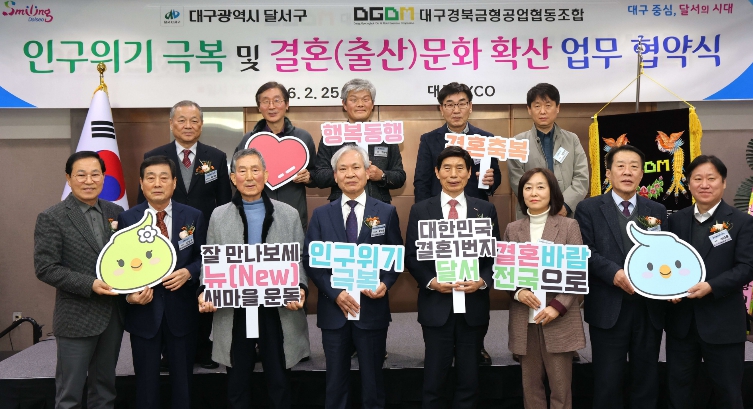[뉴스앤톡] 대구 달서구는 25일 EXCO에서 대구경북금형공업협동조합(이사장 박만희)과 인구위기 극복 및 결혼·출산문화 확산을 위한 업무협약을 체결했다.