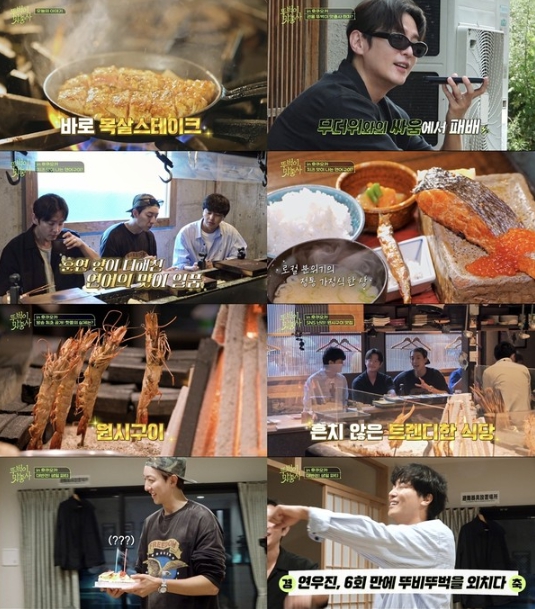 연우진이 안내한 점심 식당은 일본 정통 가정식 전문점으로, 두툼한 생선을 눈앞에서 직접 화로에 구워내는 특별한 퍼포먼스를 자랑했다. 숙성 연어의 부드러운 풍미에 흠뻑 빠진 연우진은 "치즈 아니야?"라며 감탄했다.