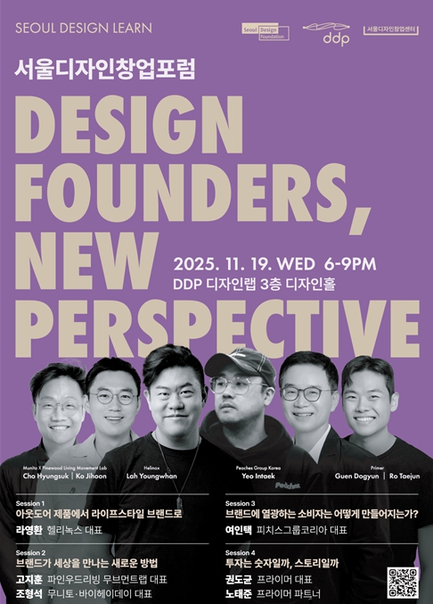 [뉴스앤톡] 서울디자인재단은 11월 19일 오후 6시, DDP 디자인랩 3층 디자인홀에서 '2025 서울디자인창업포럼(Seoul Design Startup Forum 2025)'을 개최한다. 이번 행사는 국내 유일의 디자인 창업 전문 포럼으로, ‘디자인이 창업의 미래를 바라보는 관점, 감각이 전략이 되는 순간’을 주제로 디자인 창업가들이 자신만의 시선으로 시장을 읽고, 감각을 전략으로 전환하여 브랜드를 성장시켜온 실제 사례를 공유한다.