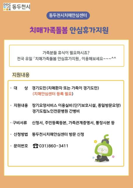 | ▲ 동두천시치매안심센터, '치매가족돌봄 안심휴가 지원사업' 안내 |