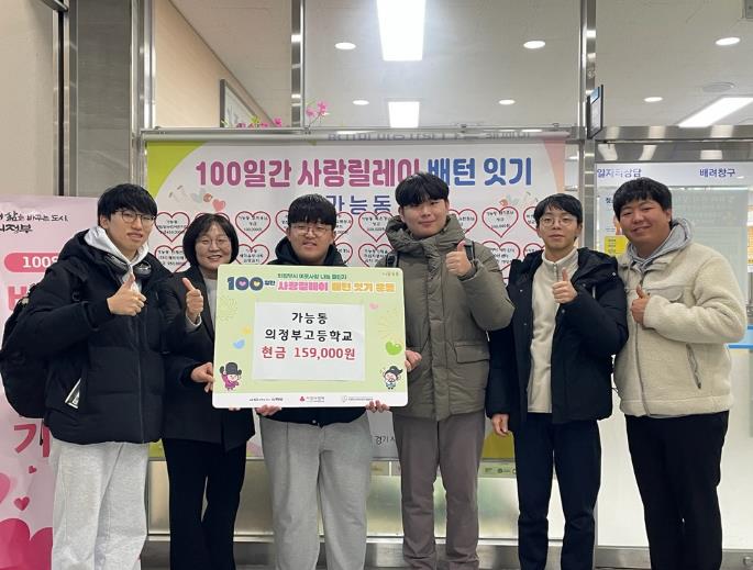[뉴스앤톡] 의정부시 가능동주민센터는 1월 7일 의정부고등학교 3학년 3반 졸업 예정 학생들이 교내 축제 활동을 통해 마련한 성금 15만9천 원을 관내 취약계층 지원을 위해 기부했다고 밝혔다.