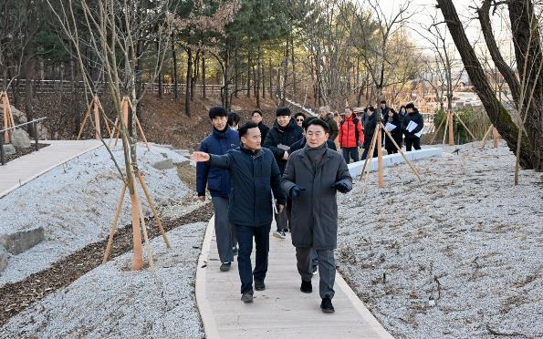 [뉴스앤톡] 의정부시는 2026년 병오년 새해를 맞아 1월 8일 녹지 인프라 확충을 위한 주요 사업 대상지를 현장 점검했다. 점검 대상지는 ▲장암동 실외정원 ▲용현산업단지 완충녹지 산책로 및 가로숲길 조성 사업지 ▲민락동 감성쉼터 등이다. 이번 점검은 도심 속 쉼터와 실외정원 확충, 안전한 보행환경 조성, 산림 명소 발굴 등 녹지 인프라 조성 사업의 추진 현황을 점검하고, 시민들이 일상에서 녹지 공간을 보다 쉽게 이용할 수 있도록 추진 중인 ‘도시숲 프로젝트’의 사업 방향과 현장 여건을 확인하기 위해 진행됐다.