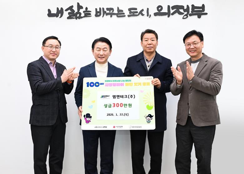 [뉴스앤톡] 의정부시는 1월 22일 엠엔테크(주)가 관내 저소득층을 위해 성금 300만 원을 기부했다고 밝혔다.