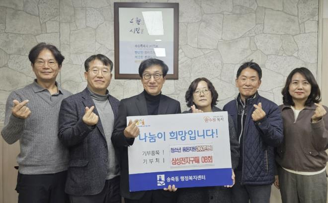 [뉴스앤톡] 수원시 장안구 송죽동은 지난 15일 삼성전자 구매OB회와 함께하는 ‘청소년 용돈지원사업’ 후원금 전달식을 개최했다고 밝혔다.