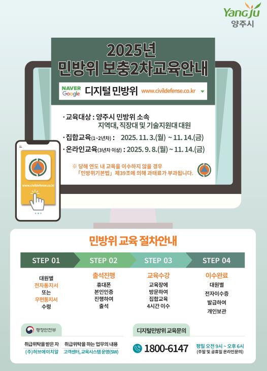 [뉴스앤톡] 양주시가 오는 11월 3일부터 민방위 교육 미이수 대원을 대상으로 민방위 보충 2차 교육을 실시한다.