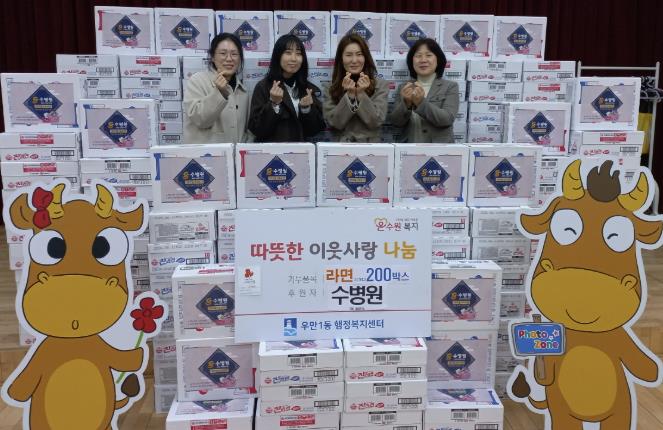 [뉴스앤톡] 수병원은 지난 4일, 설 명절을 맞아 어려운 이웃들을 위해 라면 200박스를 우만1동 행정복지센터에 기부하며 이웃사랑을 실천했다.