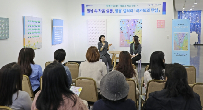 이번 행사는 4월 1일부터 27일까지 팔달 갤러리에서 열리는 현수영 작가의 개인전 ‘more more: 소비의 이면과 내면의 자아’의 일환으로 기획됐다. 이날 행사에서는 지역 주민 20여 명이 참석하며, 식전 공연을 시작으로 작가로부터 직접 작품 세계에 대한 설명을 듣고 궁금한 점을 나누는 작가와의 대담 및 질의응답 시간이 진행됐다.