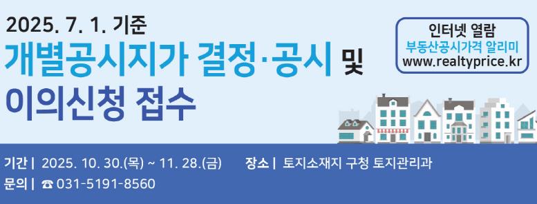 [뉴스앤톡] 수원시 영통구는 2025년 7월 1일 기준 개별공시지가를 10월 30일 결정·공시하고, 11월 28일까지 이의신청 기간을 운영한다. 이번에 결정·공시되는 대상은 올해 1월 1일부터 6월 30일까지의 토지 분할, 합병, 지목변경 등 변동 사항이 있는 58필지이다.