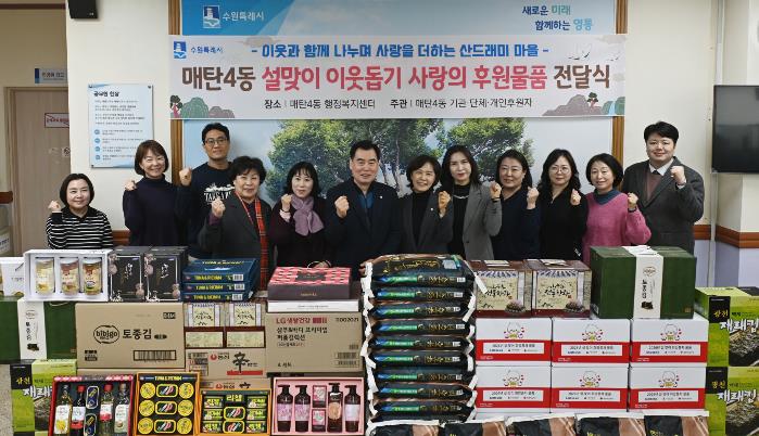 [뉴스앤톡] 영통구 매탄4동 행정복지센터는 지난 10일, 설 명절을 앞두고 지역 내 어려운 이웃들을 위한 ‘설맞이 사랑의 후원물품 전달식’을 개최하며 지역사회에 따뜻한 정을 나눴다.