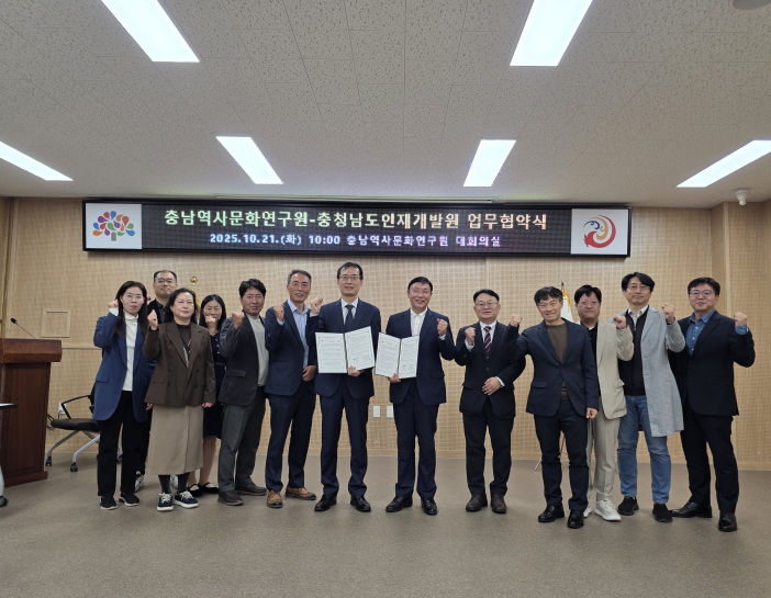 [뉴스앤톡] 충남인재개발원과 충남역사문화연구원은 21일 연구원 대회의실에서 지역 인재 양성 및 역사·문화 가치 확산을 위한 업무협약을 체결했다.