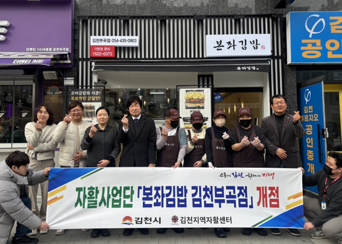 한상호 김천지역자활센터장은 “본좌김밥 김천부곡점이 참여자들에게 단순한 일터가 아닌 자립을 준비하는 디딤돌이 되길 바란다.”라며, “지역 주민들의 많은 관심과 응원이 자활 참여자들에게 큰 힘이 될 것”이라고 밝혔다.