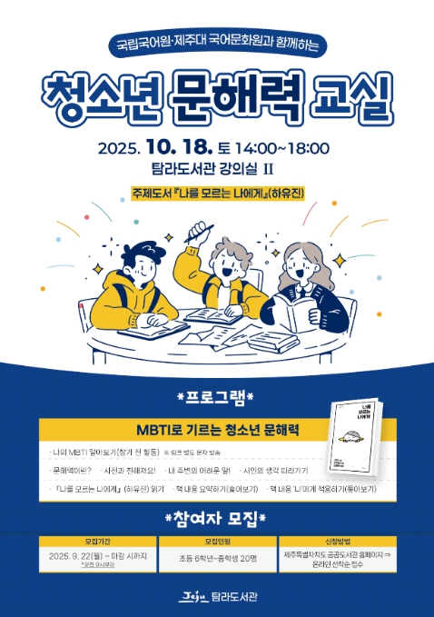 김봉석 탐라도서관장은 “이번 교육이 점차 저하되는 청소년들의 정보 해석 능력과 문해력을 키우는 좋은 기회가 될 것”이라며, “올바른 국어 사용 습관과 자기표현력을 함께 향상시킬 수 있기를 바란다”고 말했다.
