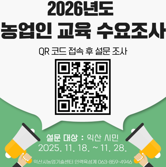 [뉴스앤톡] 익산시가 농업인의 실제 필요를 교육 정책에 반영하기 위해 '2026년도 농업인 교육 수요 조사'를 시작했다.