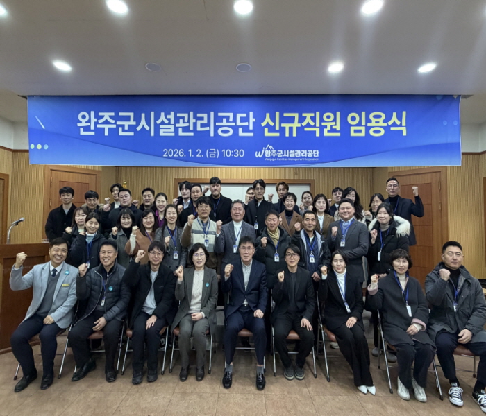 [뉴스앤톡] 완주군시설관리공단이 지난 2일 신규직원 임용식을 갖고 2026년 신규 위탁사업 운영을 위한 본격적인 업무절차에 돌입했다.