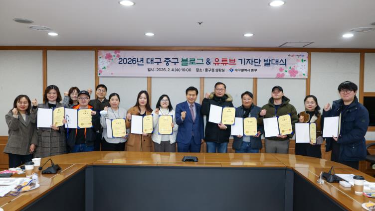 [뉴스앤톡] 대구 중구는 4일 구청 상황실에서 ‘2026년 블로그·유튜브 기자단 발대식’을 개최하고, 구정 홍보 활성화를 위한 본격적인 활동에 들어갔다.