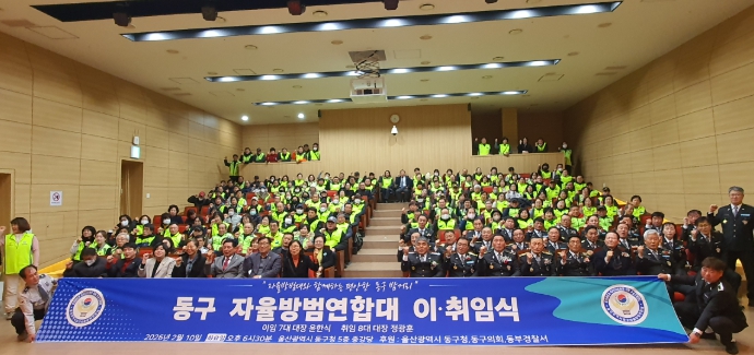[뉴스앤톡] 동구자율방범연합대(대장 정광훈)는 지난 2월 10일 오후 6시 30분, 동구청 5층 중강당에서 대장 이취임식을 개최했다.