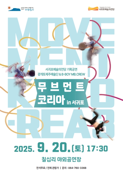 [뉴스앤톡] 서귀포예술의전당은 2025년 9월 20일 오후 5시 30분, 칠십리야외공연장에서 기획공연 '무브먼트 코리아 in 서귀포'를 개최한다.