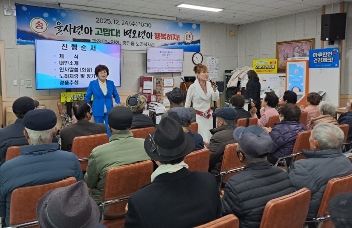[뉴스앤톡] 강진군 강진읍노인회(회장 김승복)가 지난 24일 강진읍 노인복지관 2층 강당에서 150여명의 어르신들이 참석한 가운데 2025년 송년행사를 성대히 마쳤다.