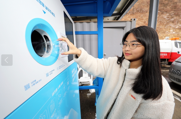 투명페트병 무인회수기는 재활용 가능 자원인 투명 페트병을 자동으로 수거하고, 수거된 개수만큼 포인트를 지급하는 자판기형 자원순환 회수 로봇이다. 페트병 1개당 10포인트가 적립되며, 2,000포인트 이상 시 현금으로 환전이 가능하다. 또한, 투명 페트병 약 50개당 한국환경공단 탄소 중립 포인트 100포인트로 적립할 수 있다.