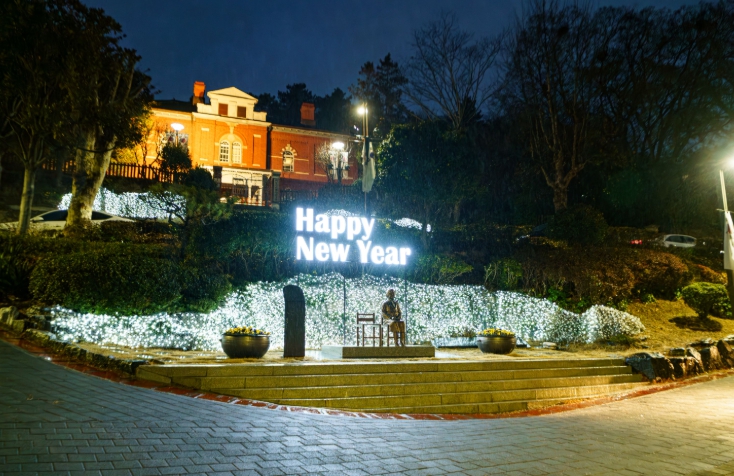 [뉴스앤톡] 목포시는 지난 23일, 연말을 맞아 근대역사관 1관 앞 평화의 소녀상 주변에 눈꽃 경관조명을 설치했다.