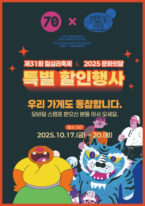 [뉴스앤톡] 서귀포시는 ‘제31회 서귀포칠십리축제 & 2025 문화의달 행사’를 맞아 지역 상권 활성화를 위한 다양한 연계 이벤트를 운영한다고 밝혔다.