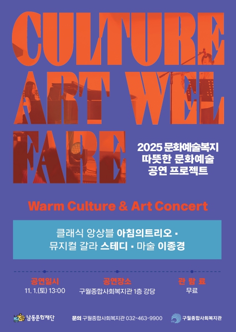 [뉴스앤톡] 인천시 남동구 남동문화재단은 구월종합사회복지관과 협력해 오는 11월 1일 오후 1시부터 구월종합사회복지관 1층 강당에서 가족 특화 문화예술복지 공연을 운영한다고 30일 밝혔다.