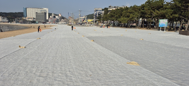 이에 구는 올해 역시 ‘비사 방지막(총면적 1만 1,700㎡)’과 ‘모래주머니’ 등을 설치해 모래 날림 피해 방지에 나선다. 이번에 설치된 비사 방지막 등은 올해 11월부터 해수욕장 개장 전인 내년 5월까지 유지된다.