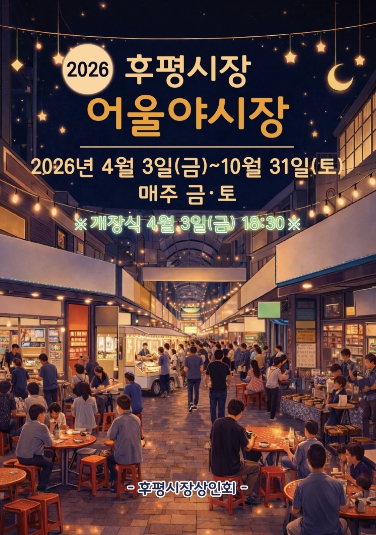 후평시장은 3일 오후 6시 30분 ‘2026년 후평어울야시장 개장식’을 열고 본격적인 운영에 들어간다. 개장식은 가수 봄봄, 김민준, 안정이의 공연과 경품추첨 등으로 진행된다.