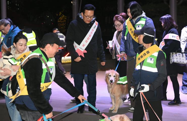 | ▲ 연수구, 반려견 순찰대 ‘연수지킴댕댕이’ 민․관․경 야간 순찰 |