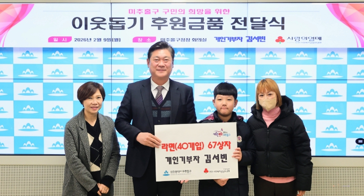 함께 참석한 김 군의 어머니는 “최근 미추홀구로 이사 오며 주민들을 위해 기부하게 됐다.”라며, “아이가 나눔의 소중함을 배우며 바르게 자라길 바라는 마음”이라고 밝혔다.