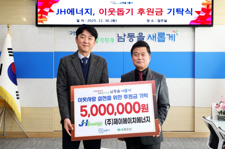[뉴스앤톡] 인천시 남동구는 제이에이치에너지로부터 취약계층 아동 지원을 위한 ‘아이리더 사업’에 후원금 500만 원을 기탁받았다고 5일 전했다.