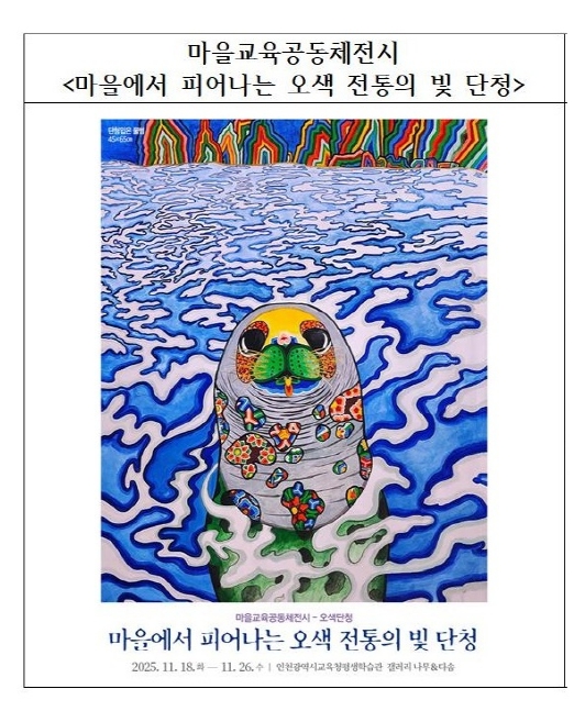 [뉴스앤톡] 인천광역시교육청평생학습관은 11월 18일부터 26일까지 평생학습관 2층 갤러리 나무와 다솜에서 ‘마을에서 피어나는 오색 전통의 빛 단청’ 전시를 개최한다.