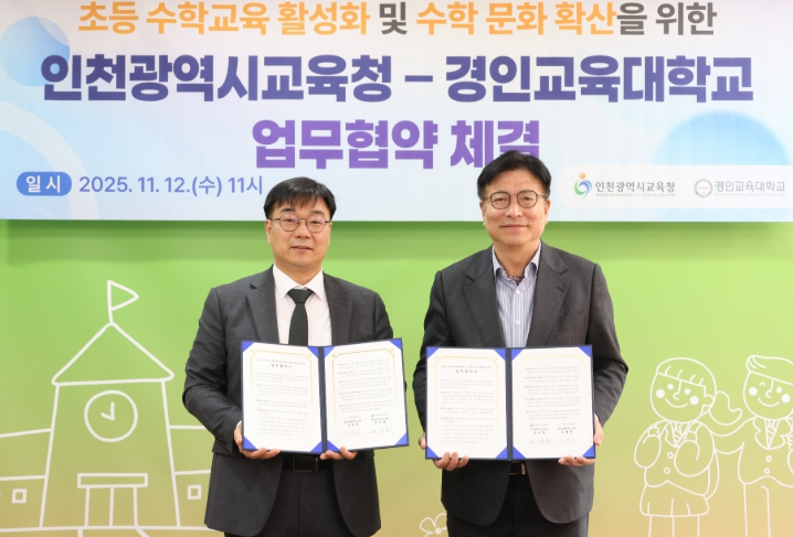 [뉴스앤톡] 인천광역시교육청은 12일 초등 수학교육 활성화와 수학 문화 확산을 위해 경인교육대학교와 업무협약을 체결했다고 밝혔다.