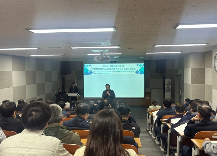 이번 협의회는 2026년 3월 개교 예정인 (가칭)영종하늘5고 등 6개교 신축공사와 관련해 시공사, 건설사업관리용역사, 기술직 공무원 등 70여 명이 참석한 가운데 진행됐다.