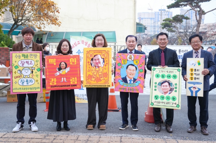 이날 현장에는 김지용 서산교육지원청 교육장과 충남도의회 이용국의원, 서산시의회 조동식 의장, 충남학부모연합회 표미자회장, 서산시학교운영위원장협의회 손안수 수석부회장 등 서산지역 유관기관 관계자들도 함께 참여하여 수험생들이 차분한 분위기 속에서 시험에 집중할 수 있도록 격려했다.