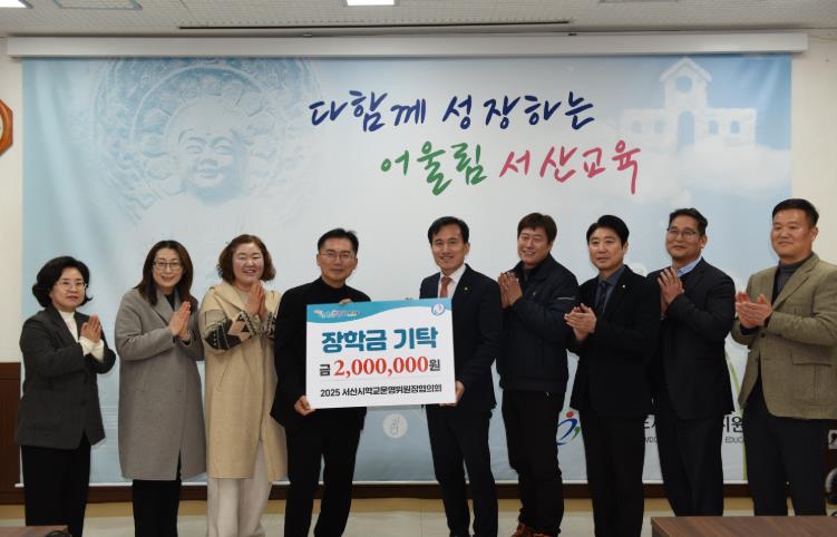 서산시학교운영위원장협의회는 2025년 활동을 결산하면서 우리 지역 학생들의 성장에 더욱 뜻깊은 기여를 하고자 장학기금을 마련했다고 밝히고, 큰 꿈을 안고 나아가는 학생들에게 따뜻한 응원의 메시지가 전달되기를 바란다는 뜻을 전했다.