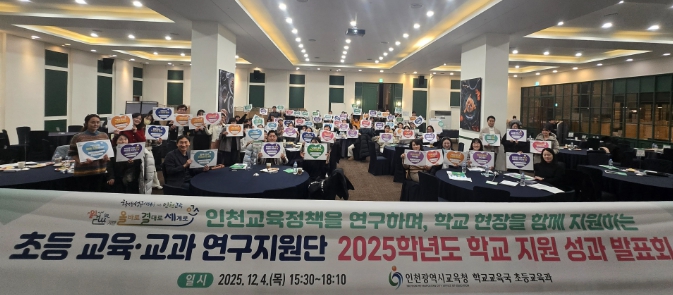 [뉴스앤톡] 인천광역시교육청은 4일 인천 지역 초등학교 교원 300이 참여한 가운데 2025학년도 인천교육정책 ‘초등 교육·교과 연구지원단’ 성과 발표회를 개최했다.