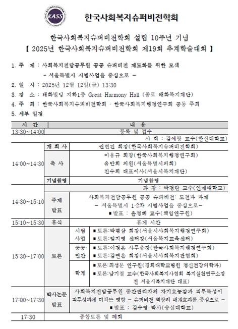 | ▲ 2025 한국사회복지슈퍼비전학회 제 19회 추계학술대회 안내문 |