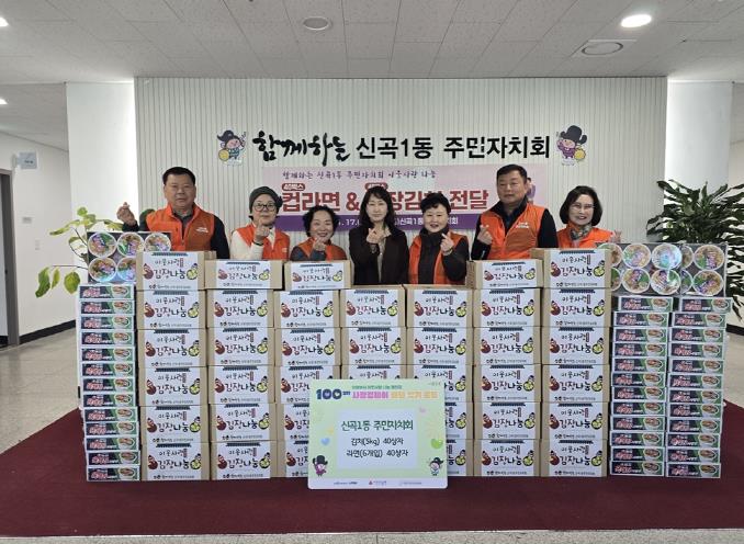 [뉴스앤톡] 의정부시 신곡1동주민센터는 11월 17일 신곡1동 주민자치회가 ‘100일간 사랑의 릴레이 배턴 잇기’에 동참해 취약계층을 위한 김장김치 40상자(5kg 단위)와 컵라면 40상자(6개입)를 기부했다고 밝혔다.