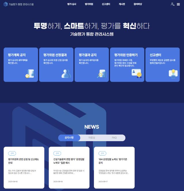 주요 기능으로는 ▲평가 안내 전용 게시판 ▲평가위원회 관리 ▲외부 소통 창구 운영 등이 있으며, 사용자는 포털 검색(‘GH 기술평가 통합관리시스템’)이나 GH 대표홈페이지 상단의 ‘주요사업 사이트’ 메뉴를 통해 시스템에 접속할 수 있다.