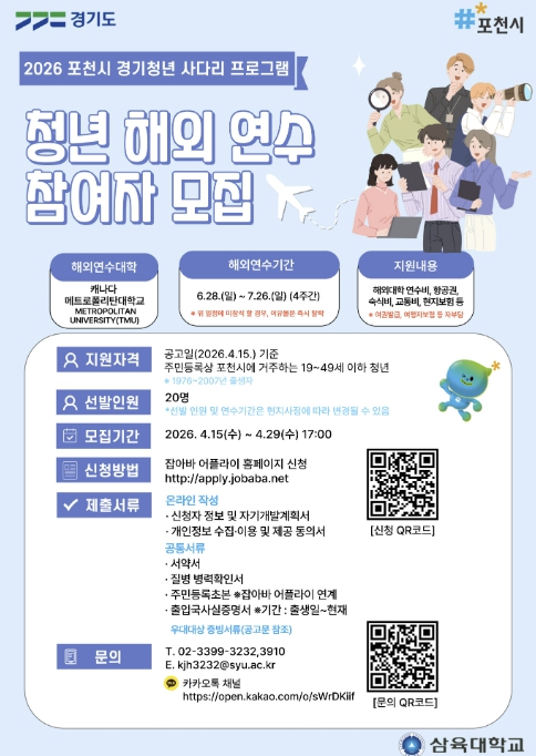 포천시 관계자는 “본 사업을 통해 청년들의 글로벌 역량을 강화하고, 자기주도적인 진로 설계와 도전 의식을 높이는 계기가 되길 바란다”고 밝혔다.
