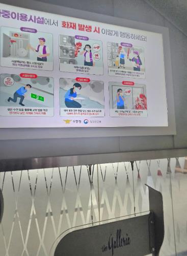 [뉴스앤톡] 천안서북소방서는 최근 갤러리아(주) 센터시티와 협력해 승강기 내 안내 모니터를 통해 다중이용시설 화재 발생 시 시민들이 지켜야 할 행동요령을 홍보했다.
